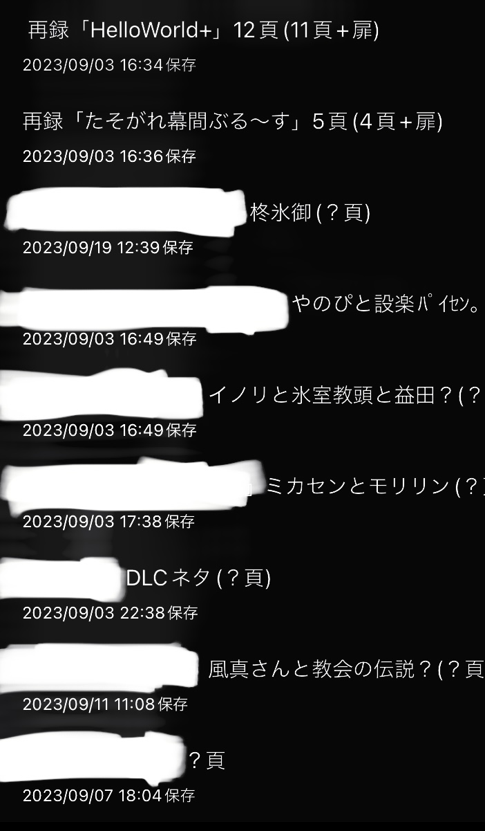 🗒️ 進捗。うむ……。 再録2本+5〜8頁くらいの描き下ろし7本になるかな…。で、できるのか………? #ラヴコレ2023秋 👍 イイネありがとうございますദി˙◡・) 2023/09/19 (Tue) 14:44:48